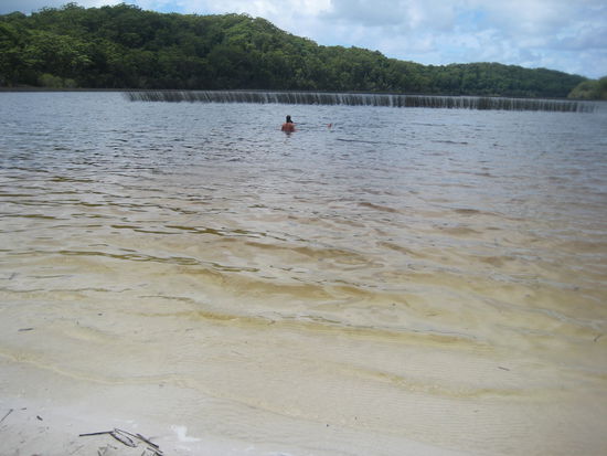 Je weiter ich ins Seeinnere schwamm desto dunkler wurde die Farbe des Wasser und glich dort einem purpur roten Wein. Das faszinierendste jedoch war, das es kein Leben im Lake McKenzie gibt. Nichts, keine Muscheln, keine Fische, keine Algen.