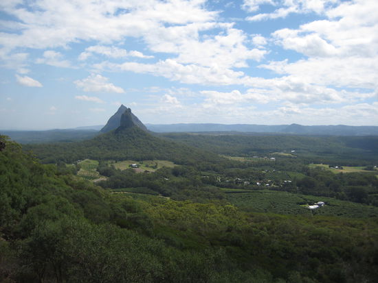 Unterwegs bogen wir an verschiedenen braunen Touristenschildern ab. Diese Schilder deuten stets auf eine Attraktion hin. Und so fuhren wir noch mal einen Abstecher durch den Australischen Busch zu dem Fuße des Glasshouse Mountains.