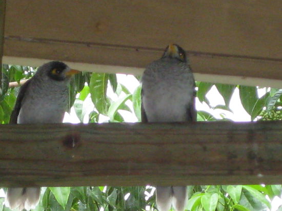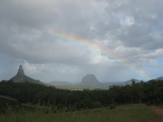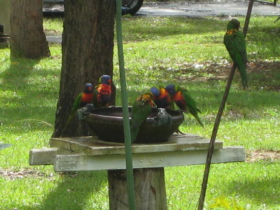 Fraser Island lag nun schon ein paar Tage hinter uns und wir hatten noch genau 1 Woche im schoenen warmen Australien, bis es hies zurueck nach Neuseeland. Laut Wetterbericht war es in Neuseeland bereits Herbst und schon schoen kuehl. Die ersten Tage von unserer letzten Woche verbrachten wir mit Stephans Familie. Wir bestiegen mit Evi, Danny und Warren die Glasshouse Mountains, machten ein Tagesausflug mit der gesamten Familie zu den Kondalilla Falls und gingen am fruehen morgen mit Greg zum Motorrad Flohmarkt Wir entspannten uns zuhause mit Buechern und Filmen. Eines Tages so uym die Mittags zeit sass ich im Wohnzimmer und lass ein Buch, weil es immernoch um ganz Elimbah seit Tagen am Regnen war, als der Regen sich einstellte hoerte ich auf einmal ein extrem lautes gezwitscher ich trat auf die Terasse und glaubte nicht was ich sah. Mindestens 15 Regenbogenpapageien hatten sich im Garten um eine Vogeltraenke versammelt und zwitscherten froehlich daher..
