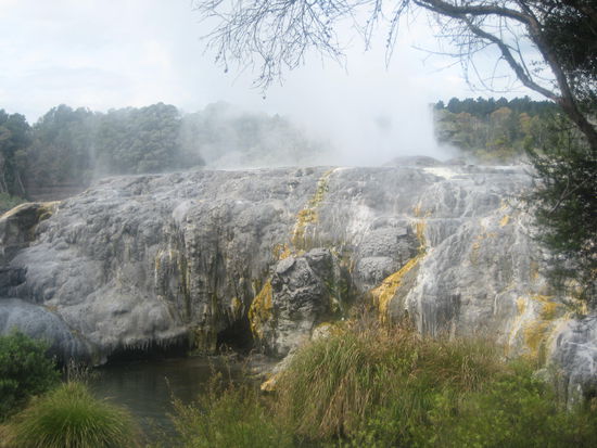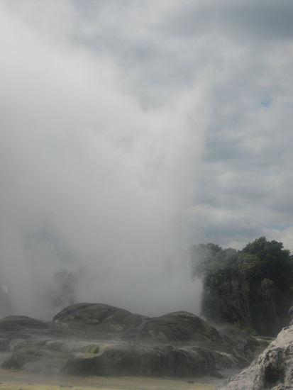 Wir gingen weiter durch diesen kleinen mysterioesen Ort und entdeckten jede Menge dieser Hexenquellen bis wir zu guterletzt vor dem groessten in ganz Neuseeland standen . Dem Pohutu, frueher nannte man ihn den Waimangu-Geysir. In der Region Rotorua auf der Nordinsel Neuseelands war er zwischen 1902 und 1904 der höchste Geysir der Welt mit einer 460 Meter hohen Springfontäne. Er ist im Jahre 1904 erloschen, nachdem sich durch einen Erdrutsch der Wasserspiegel veränderte.