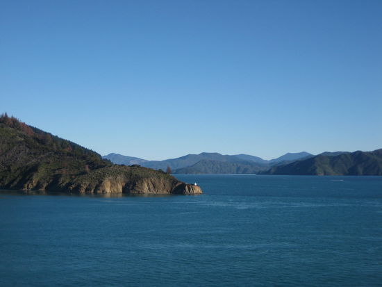 Der letzte Teil mit der Fähre ging durch ein Fjordland der Südinsel und bot einen schönen Ausblick.