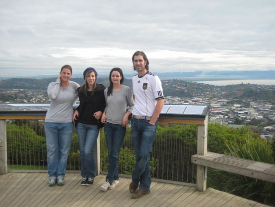 Am nächsten Tag rief der Mittelpunkt von NZ nach uns. Das hieß 147 Höhenmeter Anstieg auf den "Botanikel Hill". Ein Wanderweg führte durch den Botanischen Garten über den Rasen des ersten Rugby Spiels Nzs zum Gipfel des Hügels, der als der geographische Mittelpunkt Nzs gilt. Dank Sabbels Power schafften wir es ohne große Atemnot.