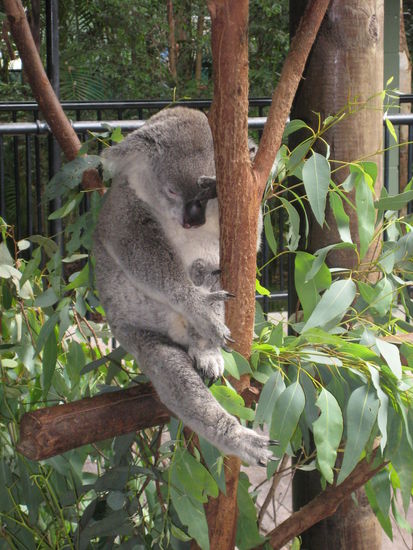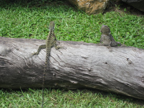 Danach sind wir zu den kleinen bunten Schweinchen gegangen, die waren super klasse!! Dann sind wir zu den Qualas, die vom Eukaliptus benommen in den Aesten hingen, dann zu den Kookaburra, auch lachender Hans genannt,, dann haben wir uns noch die giftigsten Schlangen Suedamerikas und Australiens angesehen, die Wombats, Emus, Elefanten, Dingos, Tasmanische Teufel, Tiger, Emus, die Riesenschildkroeten, die Tannenzapfenechse, die Komodowarane, die Kangaroohs und mein persoenlicher Favorit die kleinen Stachelschweine. Insgesamt haben wir 5 Stunden im Zoo verbracht. Am Abend gab es dann noch einen tolle Geburtstagstorte und BBQ bei Evi