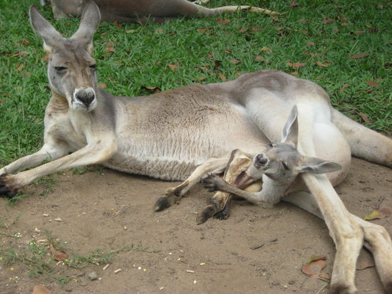 Wir begannen also mit dem schrecklichsten Tier Australiens, dem Krokodil. Im Entdefekt liegt es ja nur rum aber es war doch schon sehr beeindruckend anzusehen. Und da es ja im Zoo immer nur faul herum liegt haben sich die Waerter gedacht, machen wir doch eine Show ! Und die haben wir uns dann angeschaut. Es war die Handfuetterung des groessten Krokodils im Zoo! Wirklich sehr beeindruckend !