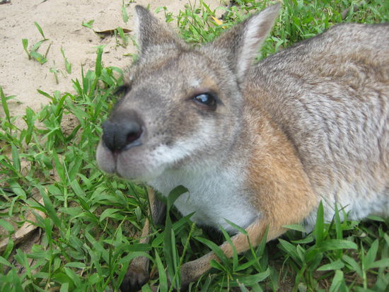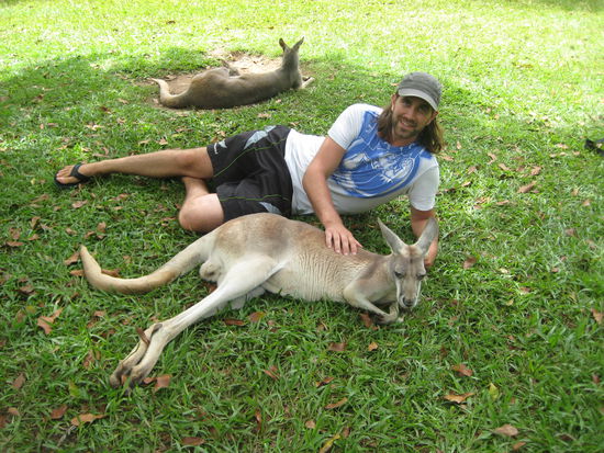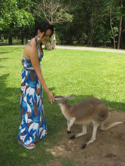 Danni ist Klasse!!!!! Sie und ihr Mann Greg,sowie ihre beiden suessen Kids Sammy und Hannah haben uns supernett willkommen geheissen und uns fuer die kommende Zeit bei sich aufgenommen. Wir haben sogar ein eigenes Zimmer bekommen.. Die erste Woche haben wir recht angenehm im Kreise der Familie Ford und Werle verbracht da es ununterbrochen geschuettet hat..super da bin ich mal in Australien und es ist nur am Regnen und das wirklich 24 stunden am Tag. Teilweise sind Strassen und Teiche ueberflutet. Am 24.2, meinem Geburtstag , den ersten Tag nach unserer Anreise, hatten wir noch Sonne. Ich hatte beschlossen von meinen Geburtstagsgeld, welches ich von meiner Familie bekommen hatte (vielen Dank nochmal dafuer meine Lieben ) in den Zoo zugehen. Aber nicht irgend so ein langweiliger Zoo mit Zebras und Affen..Nee, neamlich in den groessten Zoo der Welt, dem "Australia Zoo" von Steve Irwin! Jeah, war das Klasse Wir wussten gar nicht wo wir anfangen sollten dieser Zoo glich einem riesigen Labyrinth!!