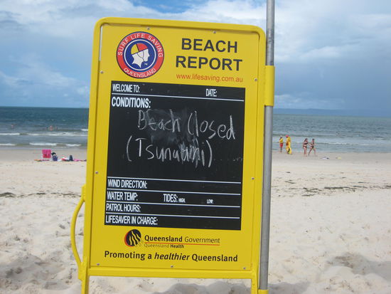 Da es in den letzten Tagen eine Tsunami Warnung am nördlichen Teil der Ostkueste Australiens gegeben hat war Bribie Island aufgrund dessen gesperrt. Wagemutig wie wir sind, gingen wir trotzdem ins Meer. Es war nicht gerade ein entspannendes Gefühl, bei jeder größeren Welle die mich ein Stück mehr ins sich zog, dachte ich, jetzt kommt der riesen Tsunami und tötet uns alle. Am Ende passierte allerdings, Nichts Das einzige was passierte war, dass mich unter Wasser ständig etwas biss..grrr..nachher erfuhr ich von Danny das es im Wasser von Bribie Island kleine Wasserflöhe gibt. Na Super !!