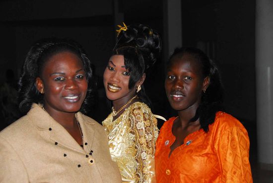 Links in Gelb die Braut, wieder ein neues Outfit mit den abendlichen "Brautjungfern" und maennlicher Bekleidung, allerdings nicht der Braeutigam. Den sahen wir erst am Montag.