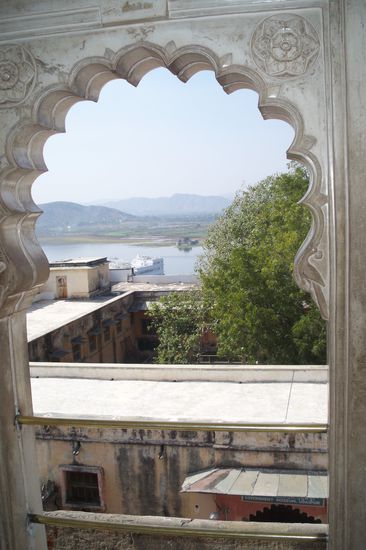 Mein Hotel nennt sich Hotel Lake Ghat Palace, ist aber außer der umwerfenden Aussicht auf der Dachterrasse doch nicht so recht ein Palast und nach meinem Geschmack, ich wechsle den nächsten Tag in Gemäuer aus vergangenen Zeiten