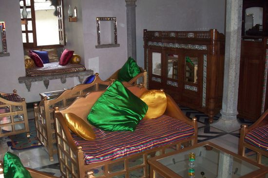 als Nächstes besuchen wir das Karni-Fort, das zu einem Luxushotel umgebaut worden ist. Es liegt auf dem platten Lande, sehr ruhig gelegen und nicht luftverpestet wie die großen Städe