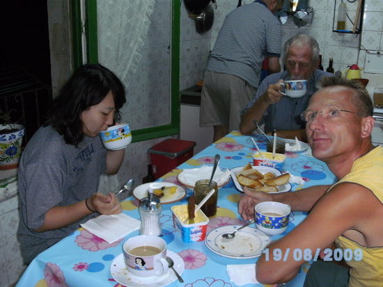 6.15Uhr gibt es bei Pedro Frühstück. Ca. 5.45Uhr hat er alle Zimmertüren geöffnet damit wir auch wach werden. Das zählt auch zu den Aufgaben eines Herbergsvaters.