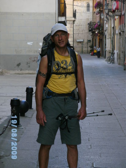 Wenn man das Bild betrachtet, möchte man zu gerne wissen, was Matthias hier denkt. Der Blick verrät mir Stolz, denn in 9Tagen 206km zu laufen ist eine Leistung und es verrät mir eine gewisse Wehmut. Wir werden nun abwarten müssen, ob Matthias irgendwann einmal den Weg fortsetzen will um eines Tages in Santiago anzukommen um sich die COMPOSTELA ab zu holen. Laut Reiseführer sind wir 213,7km gelaufen und haben noch 581,5km vor uns.