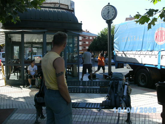 Auf dem Weg zum Busbahnhof treffen wir noch einmal Jenny und Chris, die beiden wollten auch mit dem Bus fahren und zwar in die andere Richtung bis Burgos, da sie es sonst bis Santiago nicht schaffen würden, weil der Flieger schon gebucht ist. Schön, dass wir sie noch mal gesehen haben.
