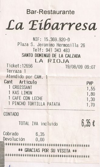 Wir wissen nun, dass wir noch Zeit haben bis unser Bus fährt. So können wir in aller Ruhe noch einmal einen Kaffee con leche trinken und Tortilla essen.