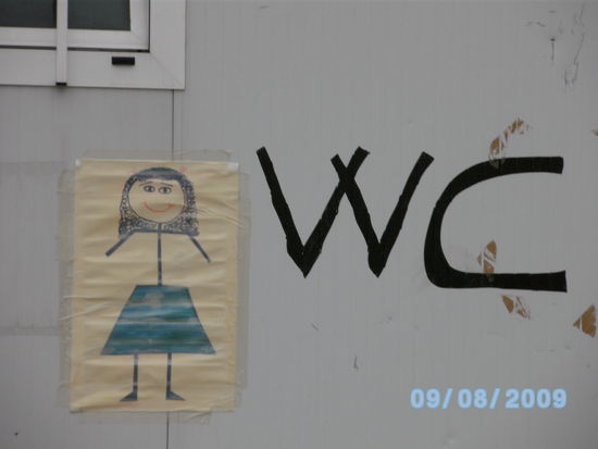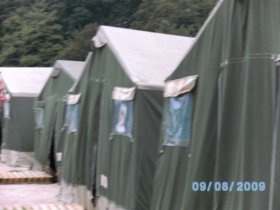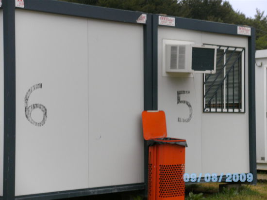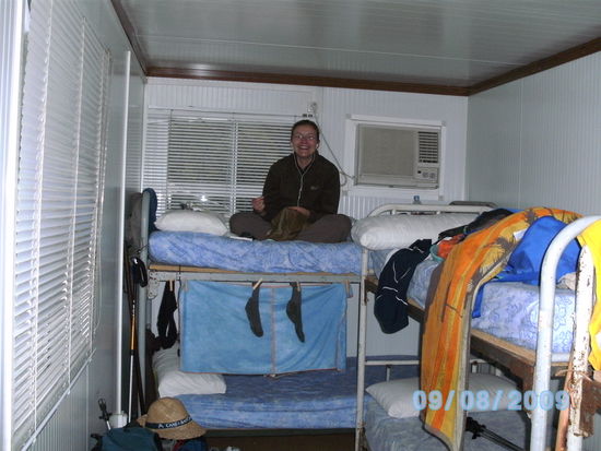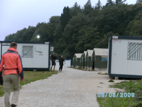 Der große Schlafsaal mit 120 Personen war schon voll, so kam es, dass wir im Containerdorf unter gebracht wurden (8 Personen).