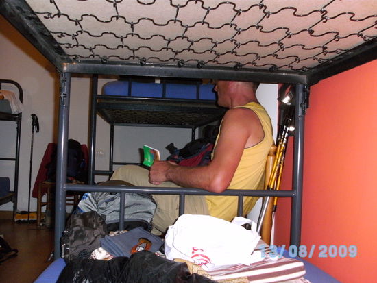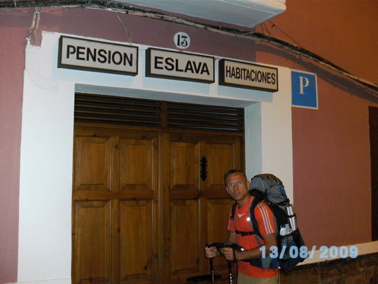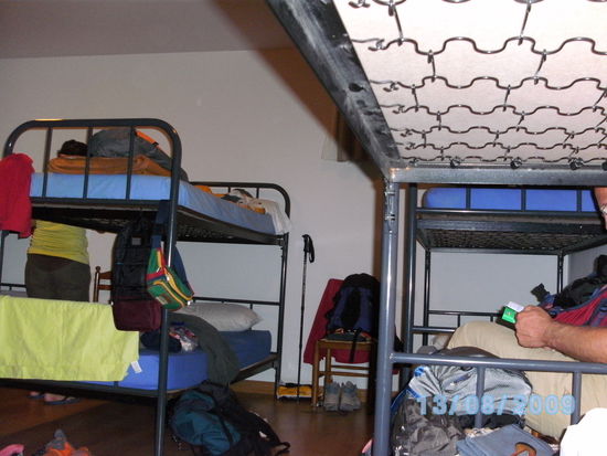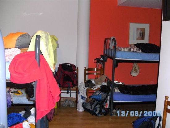 Hier bekommen wir unseren 7. Stempel und zahlen für die Übernachtung 8€, bekommen ein Kopfkissenbezug und dürfen in unsere 8 Mann oder Frauen Luxussuite einziehen. Matthias wird heute der Hahn im Korb sein, denn er darf zusammen mit 6 Spanierinnen und seiner Frau in einem Zimmer schlafen.