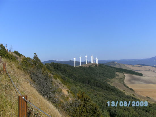 Wir kommen an den Windmühlen, nahe von Atto del Perdon vorbei. Da geht ordentlich ein Wind.
