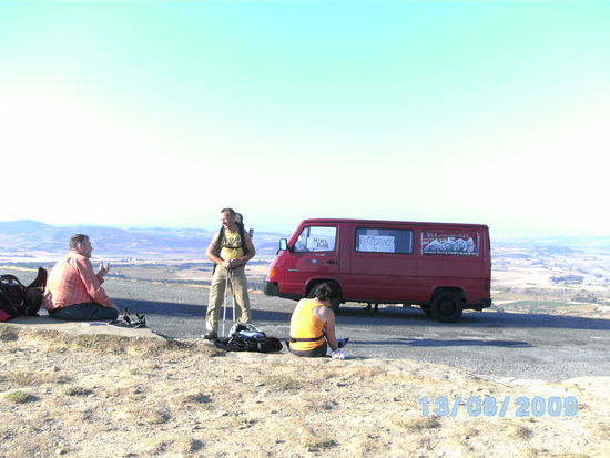 Ein "Versorgungsauto" für Pergrinos. Wir bekommen für 1€ einen guten Kaffee con leche. Hier sitzt Wolfgang, der Dicke und eine Dame aus Fulda, die beiden haben sich am Camino getroffen und gingen ein Stück gemeinsam.