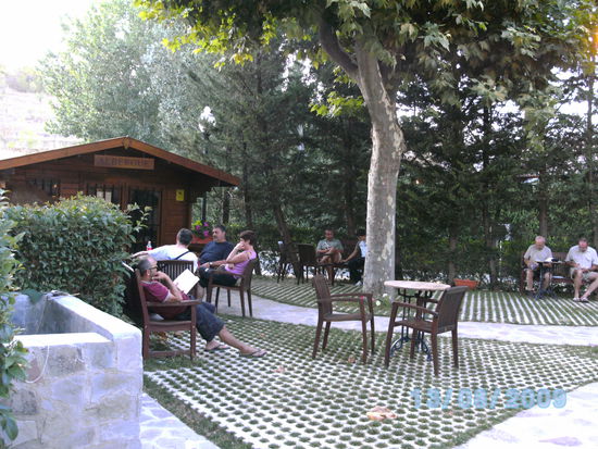 Wunderschöner Sozialraum. Hier haben wir uns ausgeruht. Im Fernsehen sahen wir den Wetterbericht, es sollte wieder sehr heiß werden. Später sind wir hinter das Haus gegangen und haben uns im Schatten, auf einer Decke, von dem üppigen Essen ausgeruht. Zuvor hatte ich unsere Wäsche wie jeden Tag am Waschbecken mit dem Rei aus der Tube durchgewaschen.