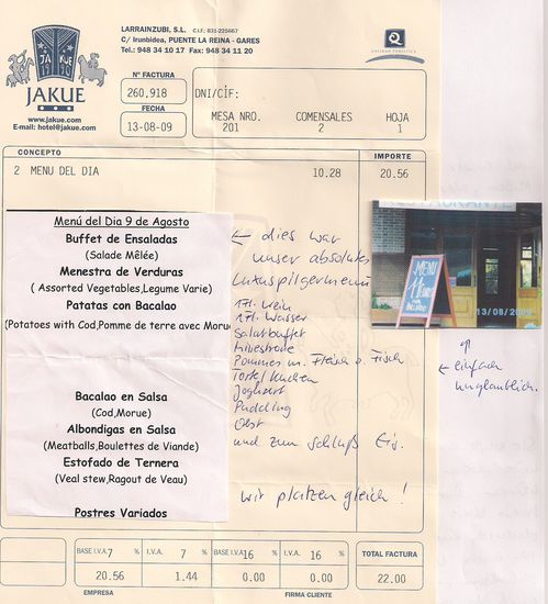Einfach unglaublich. Hier hatten wir unser Luxuspilgermenü für nur 11€: