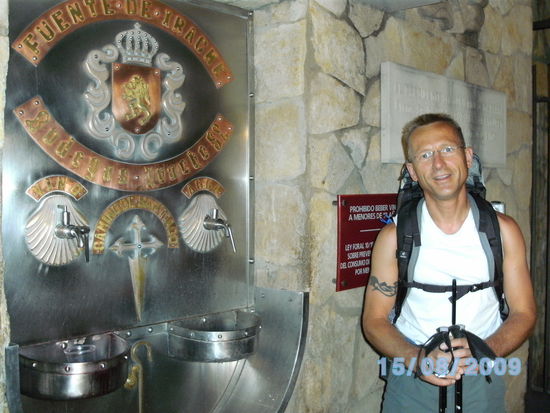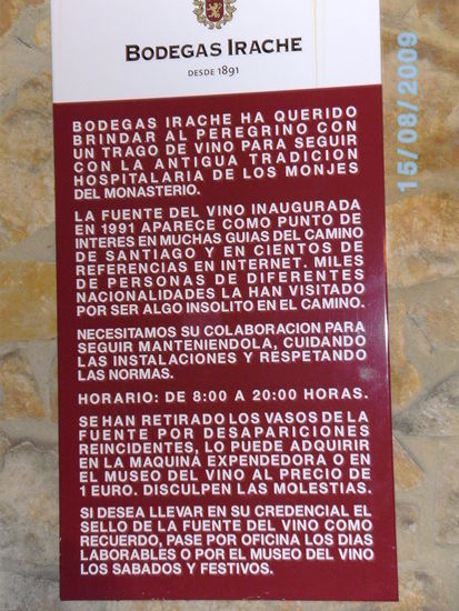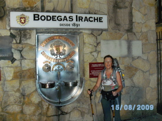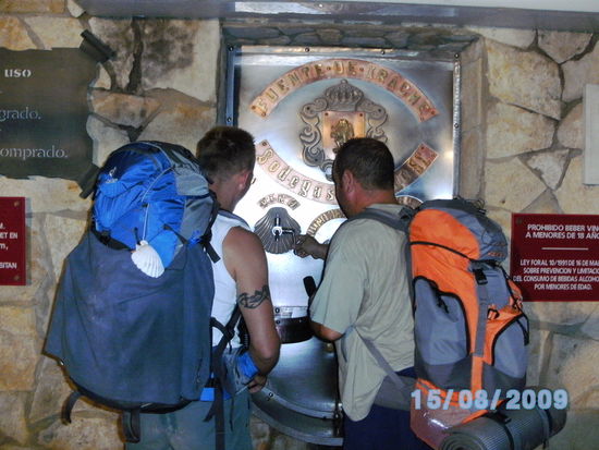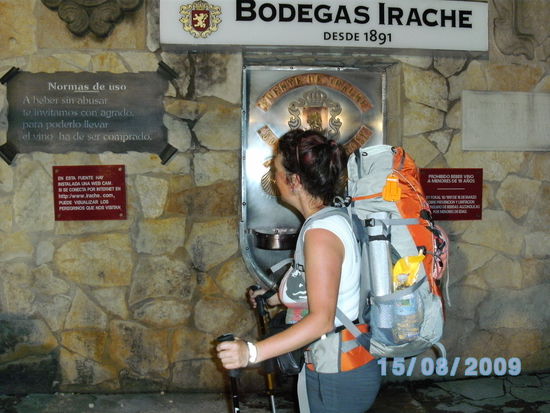 5.00 Uhr brechen wir, wie man sieht hier mit Taschenlampe auf. Noch im Dunkeln trafen wir an der 3-4km entfernten Weinquelle Bodegas Irache ein.