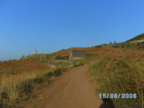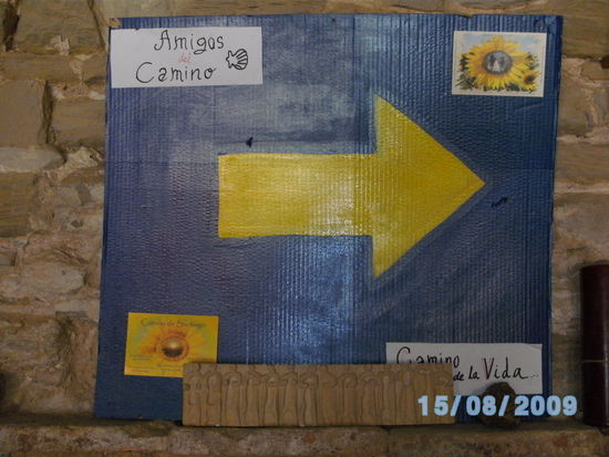 Dies hatten wir schon von dem dänischen Paar gestern in Estella gehört, stand im dänischen Reiseführer. Diese beiden, von denen wir nicht einmal ihre Namen wissen, haben uns auch irgendwie von nun an begleitet. Matthias hat ihm seinen elektrischen Reiserasierapparat vermacht. Im Übrigen haben wir gestern unsere Rucksäcke etwas erleichtert und in der Behindertenherberge in die Kiste gelegt "gib was du hast und nimm was du brauchst". Wir entledigten uns folgender Dinge: Persil flüssig, Duschgel, Tape da wir keine Blasen hatten, Desinfektionsmittel, 2 Getränkeflaschen (so hatte jeder von uns noch 1 ½ Liter), Matthias seine Haarbürste und eine Rolle Klopapier.