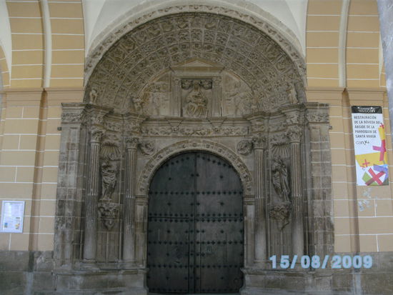 Eingang zur Kirche Iglesia Santa Maria (romanisch, gotisch bis barock). Die Kirche bleibt für uns leider verschlossen. Hier in Spanien sind die Kirchen nur zu bestimmten Zeiten geöffnet.