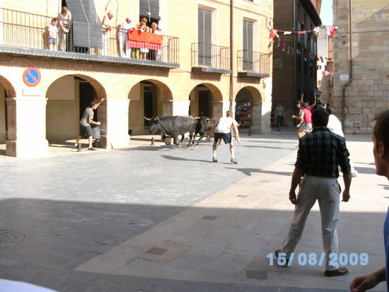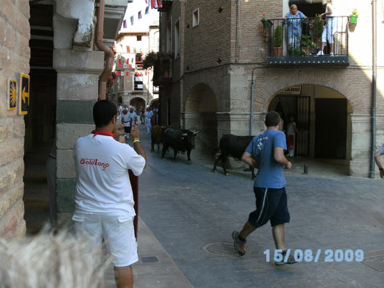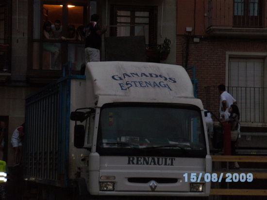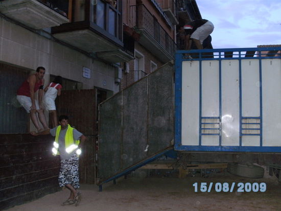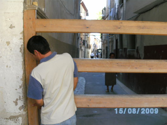 Hier wird eine Straße "dicht" gemacht, in die die Stiere nicht laufen sollen.