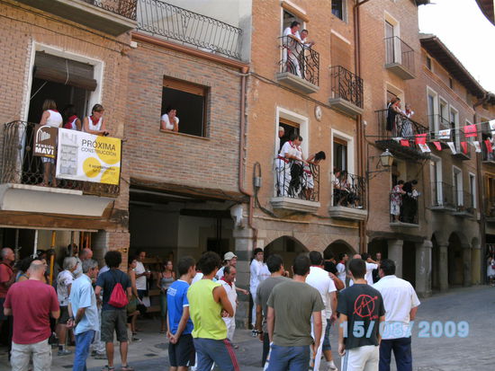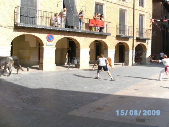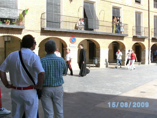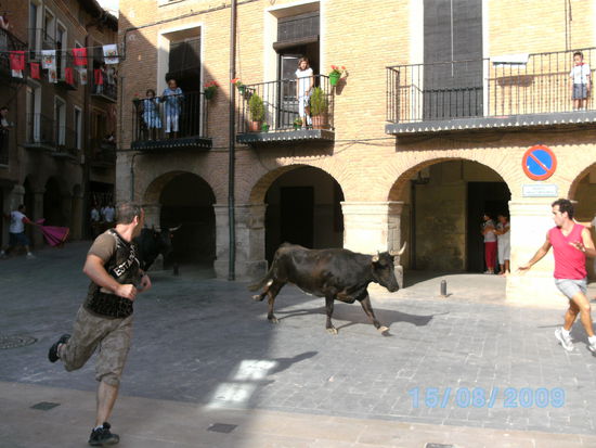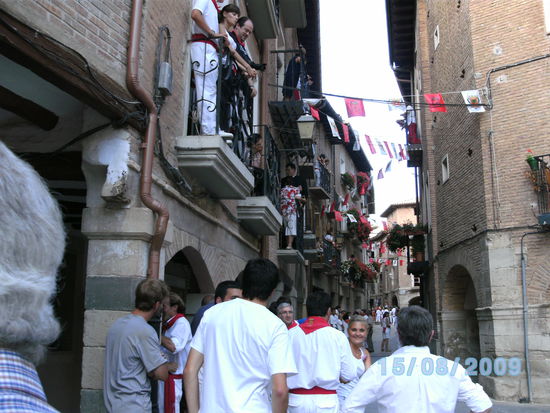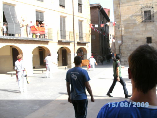 Wir gingen durch den Ort und bestaunten wie sich alle vorbereiteten. Die wertvollen Haustüren werden mit Eisengittern geschützt, denn am Abend laufen hier für eine Stunde lang die Stiere durch. Und immer wieder sieht man eingelassene kleine Holzwände, falls man sich notfallmäßig verstecken muss.