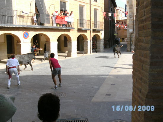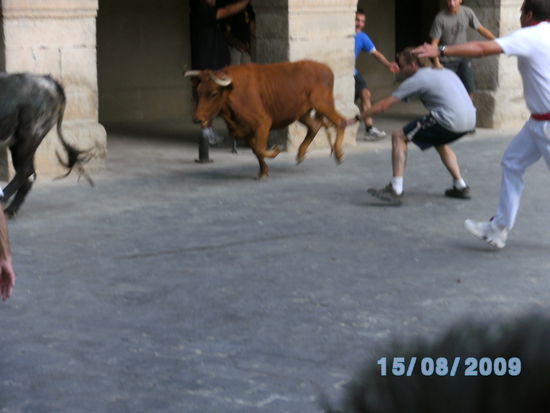 Nach der Massage gehen wir zurück zum Fest. Wir haben erfahren, dass am Abend noch eine Corrida statt findet. Zum Glück dürfen alle Stiere am Leben bleiben.