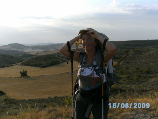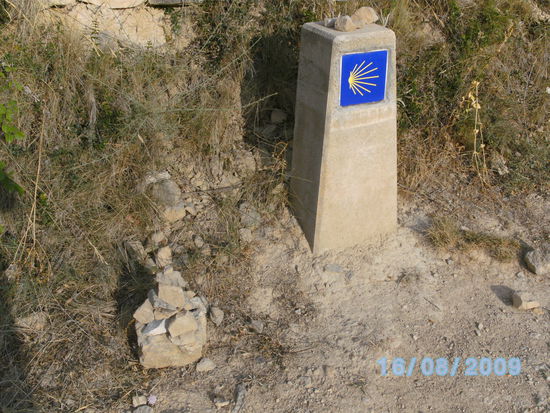 Ca. 3km vor Logrono sitzt eine Dame am rechten Wegrand unter einem Sonnenschirm, sie erteilt uns unseren Stempel Nr. 13 mit der Innschrift " Higos- aqua - yamor" (Fliegen Wasser und Liebe). Hier kaufe ich mir auch für 4€ meine Halskette, die ich seit der Zeit nicht mehr abgelegt habe. An dem Fußweg zum Ebro (Fluss) stempelte viele Jahre lang Dona Felisa die Pilgerpässe bis sie 92 jährig verstarb, die Dame die das heute macht ist ihre Tochter.