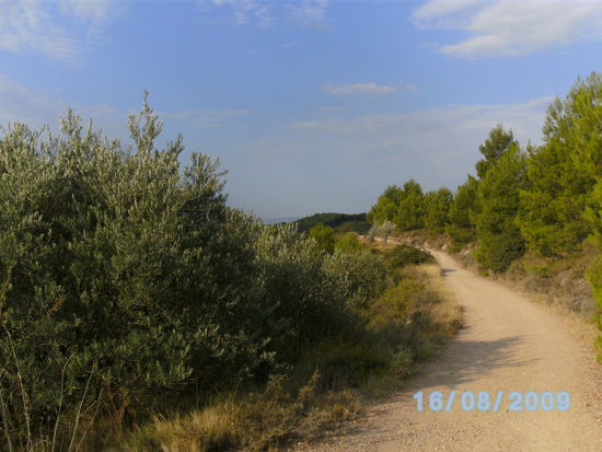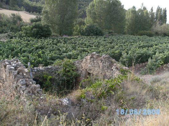 Matthias war schon über alle Berge, als mir ein entgegenkommender Pilger, kurz bevor er bei mir war, recht übel stürzte, er schlug sich Arme, Knie und das Gesicht auf, ausgerechnet hier war der Weg etwas betoniert und am Rand war ein großer Brombeerstrauch. Der Mann war nicht zur Umkehr zu bewegen und wollte nach Los Arcos, so habe ich ihn wenigsten, mit meiner Wasserration, etwas sauber gemacht.