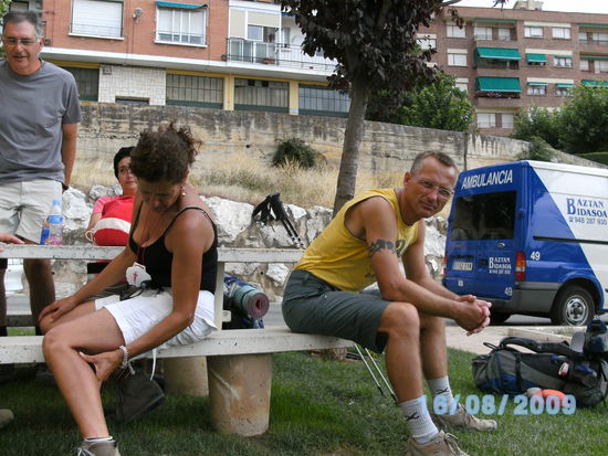 Hier machen wir Rast und treffen auch viele Pilger, die auch noch weiter wollen. Kurz bevor wir gehen, sehen wir noch einmal unseren Musikus Friedemann, er wird in Viana schlafen, wegen seiner Blasen kann er nicht weiter.