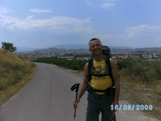 Dann geht es weiter und Logrono liegt uns förmlich zu Füßen. Auf diesem Weg treffen wir Eric aus Holland. Eric kann sogar sehr gut deutsch und Matthias unterhält sich mit ihm. Eric sagt; die jungen Pilger sind so arg getrieben und bemerken gar nicht die Zeitlosigkeit und die Schönheit der Natur.