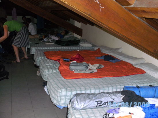 Im Dachgeschoß befindet sich noch ein Matratzenlager. Hier ist es sehr warm.