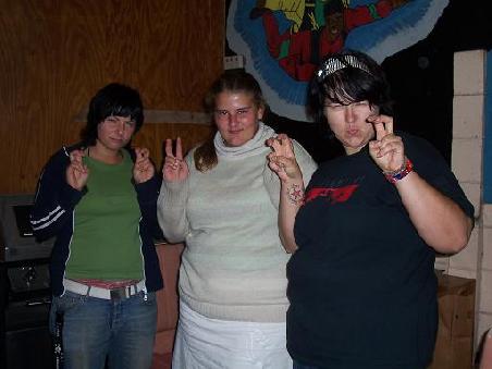 Wir mit (von links nach rechts) Julia, Feli und Sarah aus Deutschland. Begruessung auf deutsche Art.