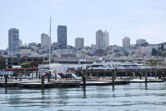 Wir bekommen auch noch ein paar schöne Ansichten von Alcatraz zu sehen und natürlich immer wieder den tollen Blick auf die skyline der Stadt.
