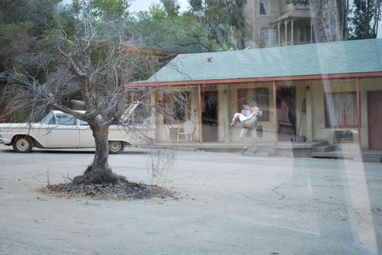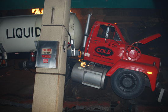Es gibt noch so viel mehr zu bestaunen: Tanzende und gleichzeitig explodierende Autos auf elektronischen Hydraulik-Armen. Plötzlicher künstlicher Regen + künstliche Totalüberschwemmung eines "mittelamerikanischen" Dorfes, Häuserfassaden, die für wahlweise "alles" in Europa oder New York herhalten können - man muss nur die Strassenschilder austauschen..Kulissen, Kulissen, Kulissen. Was im Film total echt aussieht, ist wirklich nur Pappmachè, gestützt von ein paar Balken dahinter.