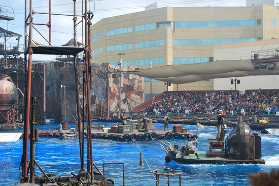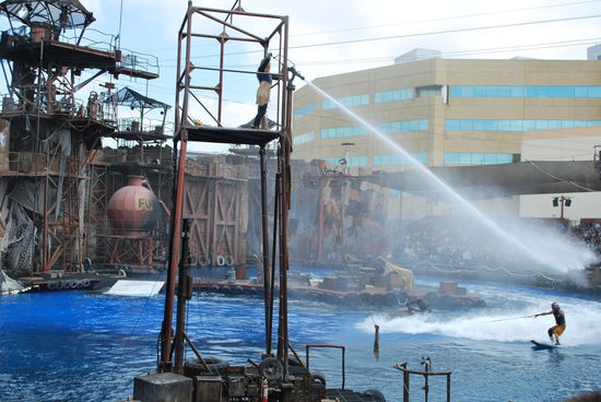 Meinen aufkommenden Hunger stille ich an einem Hot-Dog-Stand und mache mich dann auf zur waterworld-Show, wo ich diesmal ca. 20 Minuten Schlange stehen muss, aber wie sich zeigen wird, ist es das wert.
