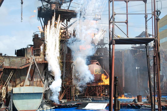 Abgesehen davon, dass am Ende der show fast alles in Flammen aufzugehen scheint, finde ich am irrsten, dass urplötzlich auch noch ein Flugzeug in dem Bassin landet ! Echt ganz grosses Kino, diese show !