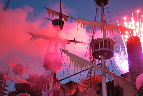 Nee, die Mädels - leicht bekleidet - singen irgendeinen Schrott. Dann biegt das 2. Piratenschiff um die Ecke, das man vorher nicht gesehen hat. Die leicht-bekleideten Mädels und die Piraten singen gegeneinander an und dann wird scharf geschossen. Und die gesamte Hotel-Umgebung per Feuerwerk spektakulär ausgeleuchtet. Man selber steht dicht gedrängt vor der Hoteltür, hat bestenfalls einen Margharita im Totenkopf-Mega-Becher zu 10 USD in der Hand und freut sich des Lebens.