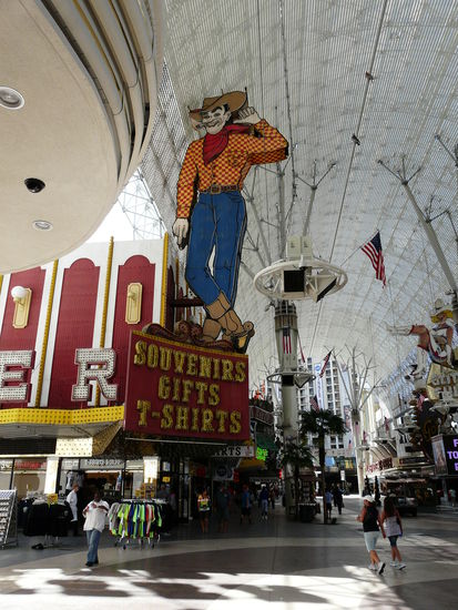 Hier sieht es zwar nicht so schillernd Bunt aus wie auf dem Las Vegas Boulevard, dafür erscheint alles etwas kleiner und gemütlicher. Es lohnt sich auf jeden Fall auch hier mal vorbei zu schauen. Leider schaffen wir es nicht mehr im dunkeln hier hin, wenn alles beleuchtet ist, aber auch Tagsüber hat es uns gut gefallen und Abends gibts hier sogar gratis open air Konzerte.