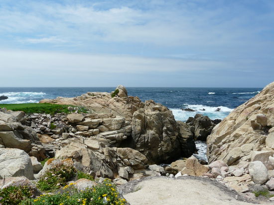 Heute verlassen wir die Stadt der Blumen (-kinder) und des Nebels und fahren entlang des Highway No 1 in Richtung Monterey. So fahren wir fast den ganzen Weg am Meer entlang und können, als sich der Nebel lichtet eine schöne Aussicht genießen.