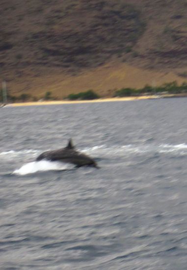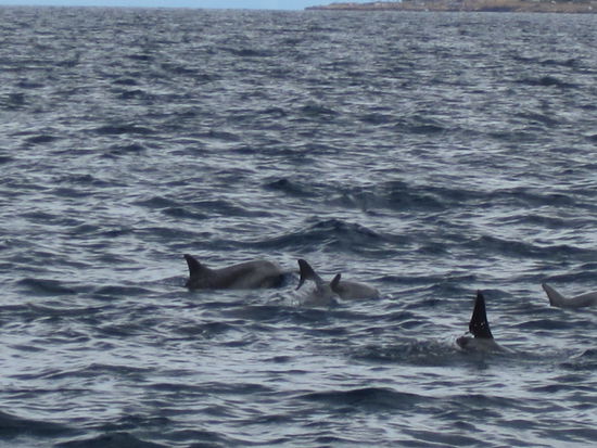 Dann bekommen wir auch noch mal einige Delphine zu sehen, die jetzt auch durch die Luft springern und Saltos machen, aber leider ziehen auch diese immer so schnell weiter, das wir nicht zu ihnen ins Wasser können.