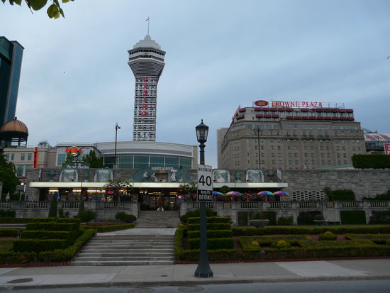Weiter gehts vorbei am größten der Finger Lakes auf zur kanadischen Grenze. Bis dahin sind wir gut durchgekommen, doch zur Grenzüberquerung brauchen wir anderthalb Stunden, denn mit dem Bus vor uns scheint irgend was nicht zu stimmen. Als wir endlich die Grenze überquert haben machen wir noch eine kurze Rundfahrt und werden dann am Hotel abgeladen. Nach einem kurzen check in erkundigen wir uns gleich noch nach einer Busverbindung nach Toronto, aber leider kann der Concierge uns nicht wirklich weiter helfen. Na egal, nachdem wir unsere Sachen im Zimmer verstaut haben machen wir uns gleich auf den weg zu den Niagara Fällen, denn es wird sowieso schon langsam dunkel.