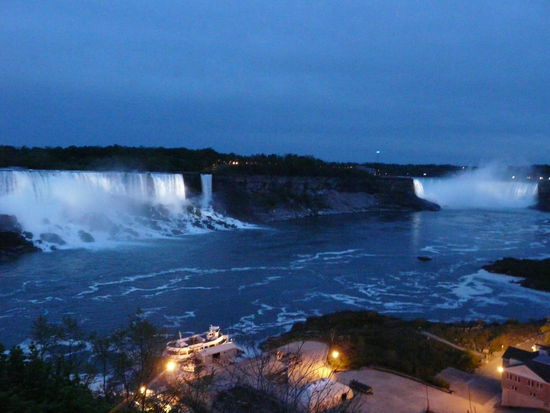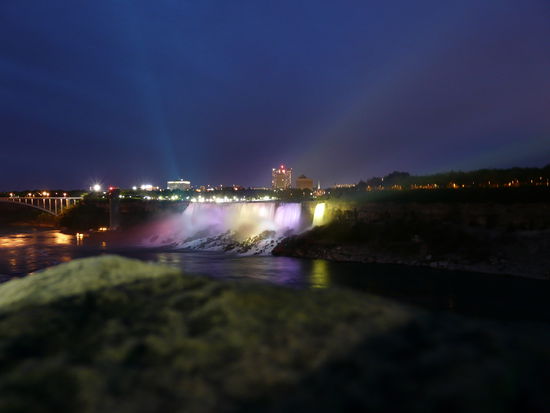 Wir beobachten das Schauspiel eine ganze Weile und machen unzählige Bilder. Irgendwann reißen wir uns aber doch von dem Anblick los und machen uns auf um den Rest von Niagara zu erkunden. Doch zu unserer Verwunderung hat außer dem Kasino, dem Hard Rock Cafe und einigen wenigen anderen Läden alles geschlossen, sogar KFC, Pizza Hut und Co sind zu und das schon um 22 Uhr. Vollkommen tote Hose! Also gehen wir zum Hotel zurück und warten auf das was Morgen kommen wird...