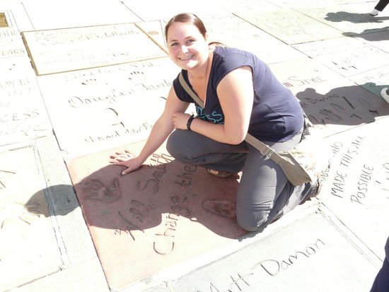Da wir so früh dran sind ist es zum Glück noch ziemlich leer und wir schlendern dan Hollywood Boulevard rauf und runter und können uns alles in Ruhe angucken. Das Chinese Theatre mit Hand und Fußabdrücken darf natürlich auch nicht fehlen, auch wenn es hier schon voller wird.