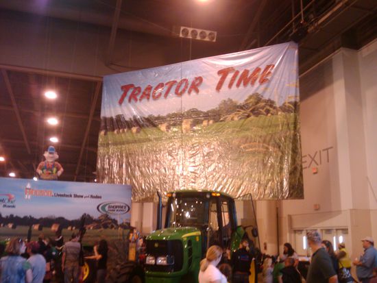 Nach der kleinen Pause ging es die Rolltreppe wieder runter in den eigentlichen Attraktionsbereich für alle Besucher, die nur zum Spaß hier waren und das Rodeo nicht sehen wollten, sowie für alle anderen, die nicht auf den Rummel gehen wollten. In einer gaaaaanz großen Halle gab es verschiedene Verkaufsstände von Hüten, über Kleider, Sofas, Betten, Deko und Handys, bis hin zu Autos und Traktoren. Der ganze Kram machte jedoch nur die eine Hälfte der Halle aus! In der anderen konnte man das Lebendige zu sehen bekommen: Kühe, Bullen, Schweine, Hasen, Hühner und die Geburt eines Kalbes auf großen Bildschirmen machten das Ganze nicht gerade langweilig. Nachdem wir alles ausführlich besichtigt hatten verbrachten wir den Rest der Wartezeit beim Eisessen und im VIP-Bereich.