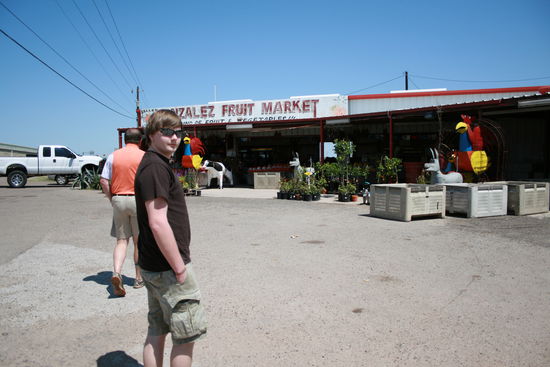 Nach ca. 1 Stunde Fahrt machten wir noch bei einem der bekannten mexikanischen Obststände halt, wo wir uns "ein paar" Orangen und Äpfer kauften. Der Verkäufer hat uns (natürlich unerwartet) gleich seine Lebensgeschichte erzählt und als er mitbekommen hatte, dass ich Deutscher bin, wollte er mir sofort Spanisch(?!) beibringen. Zuerst war er ziemlich nervig, dann aber eher lustig und es hat sogar Spaß gemacht.