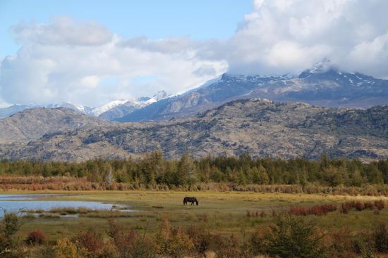 Ziel der Tour ist Rio Tranquilo in 70 km Entfernung. Ich decke mich fuer vier Tage mit Proviant ein. Der Rucksack ist schwer beladen und ich gehe einfach mal drauf los. Ein komisches Gefuehl, wenn du gar keine Vorstellung hast, was dich erwartet. Aber der Piste folgend komme ich an malerischen Flecken vorbei mit Fluessen, Gletschern, Buchten, ab und zu ein Bauernhaus. Es geht auf und ab, doch kein Mensch in Sicht. Die erste Unterhaltung fuehre ich am zweiten Tag mit einem Bauern, der seine zwei Kuehe einfaengt. Er sitzt aufm Gaul und wird von zwei Hunden flankiert. Ein Gebruell und Geklaeffe! Er traegt ein Schafsfell als Hose und ist ganz verwundert, dass ich ihn verstehen kann. Voller Stolz stellt er sich mit seinen drei Vor- und zwei Nachnamen vor und posiert fuer ein Foto. Was fuer eine Begegnung!