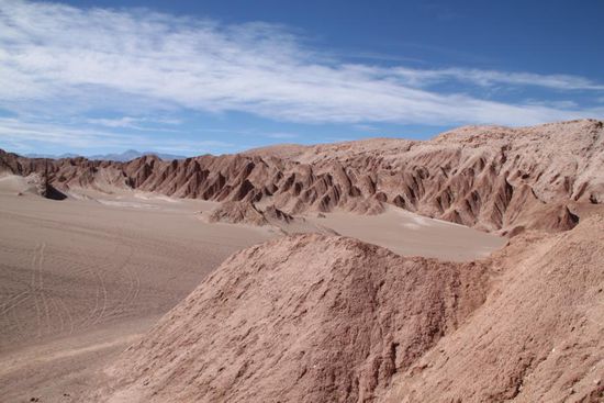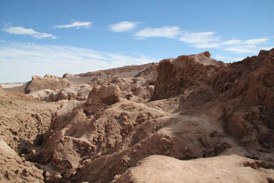Die Namen der Gebirgszuege wie Tal des Mondes und Tal des Todes lassen schon einiges ueber die Landschaft vermuten. Ich radle mit Reisefreunden aus England und Australien in das Tal des Todes. Ganz so schlimm wie es klingt, ist es dort auch wieder nicht. Wir sind alle lebend rausgekommen. Aber ausser Sand und Fels gibts dort nichts mehr, dafuer aber in herrlicher Version. Da meine Begleiter im Tal des Todes mit Sandboarden beschaeftigt sind, fahre ich mit dem Rad und ohne Rakete zum Mond.